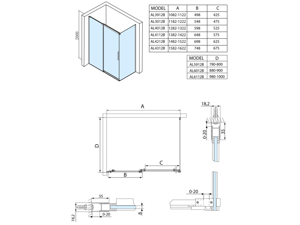 - Dvere sú delené na časť posuvnú a časť pevnú - umožňujú variabilnú inštaláciu s ľavým alebo pravým otváraním.