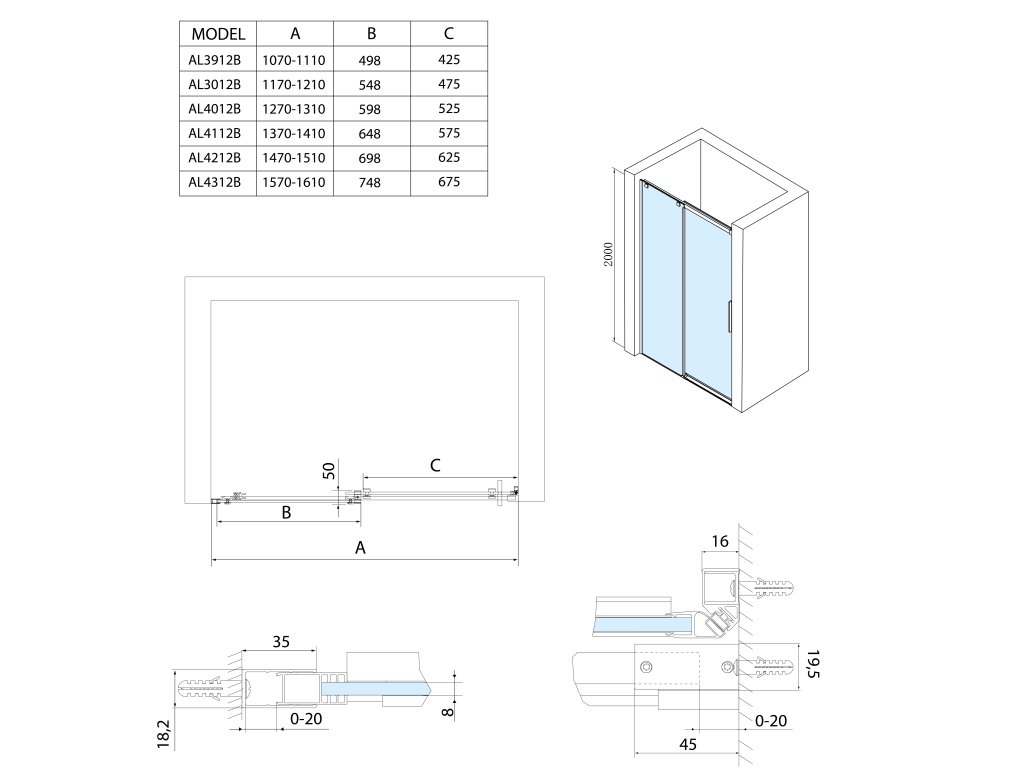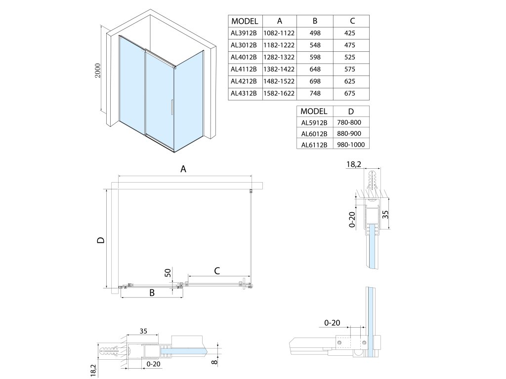 - Dvere sú delené na časť posuvnú a časť pevnú - umožňujú variabilnú inštaláciu s ľavým alebo pravým otváraním.