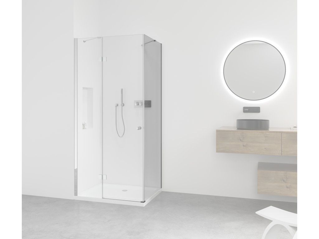 Táto sprchová zástena s transparentným sklom zvýrazní priestor a podporí svetlosť kúpeľne. Vytvorí tak príjemné a otvorené prostredie pre vašu relaxáciu.