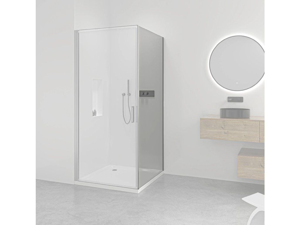 Táto sprchová zástena s transparentným sklom zvýrazní priestor a podporí svetlosť kúpeľne. Vytvorí tak príjemné a otvorené prostredie pre vašu relaxáciu.