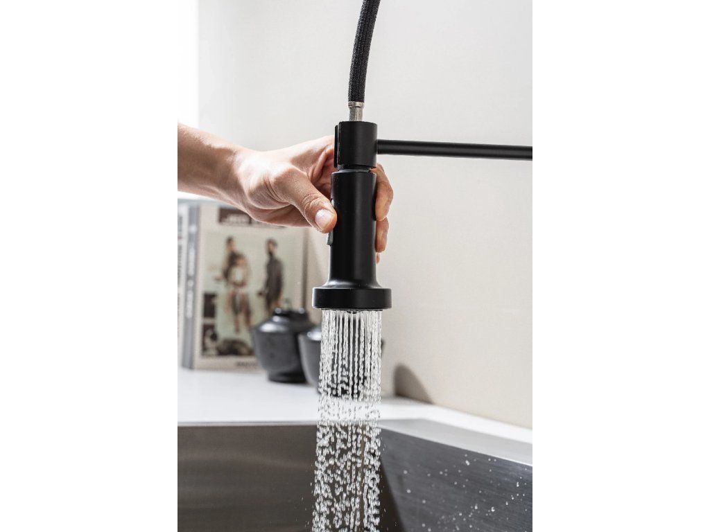 Je funkcia dovoľujúca vysunúť spršku, čo uľahčuje manipuláciu s vodným lúčom pri umývaní riadu, čistení drezu alebo plnení hrncov. Sprška je spojená s telom batérie pružnou hadicou, ktorá sa vďaka spätnému mechanizmu automaticky vracia do pôvodnej pozície.
