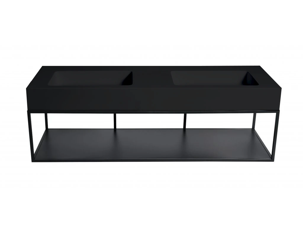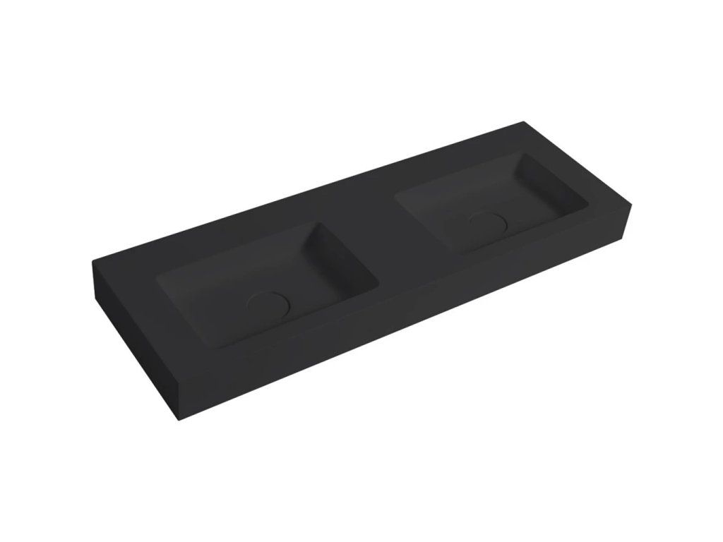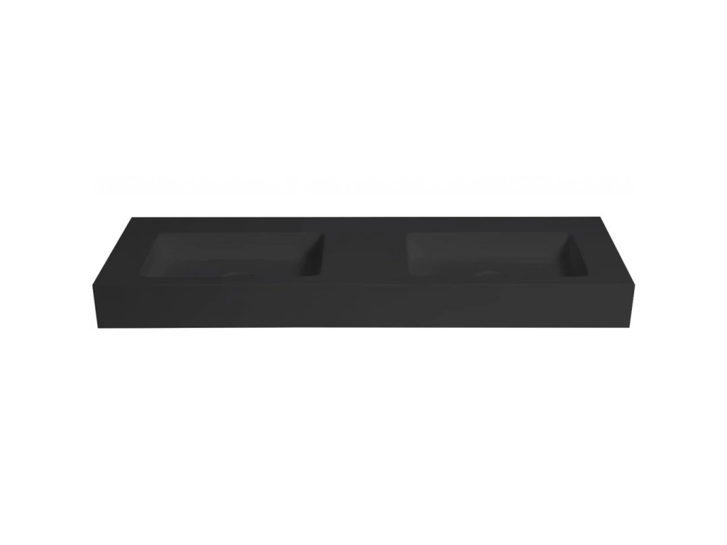 CERANO - Dvojumývadlo z liateho mramoru Geminia - nástenné - čierna matná - 133x45 cm