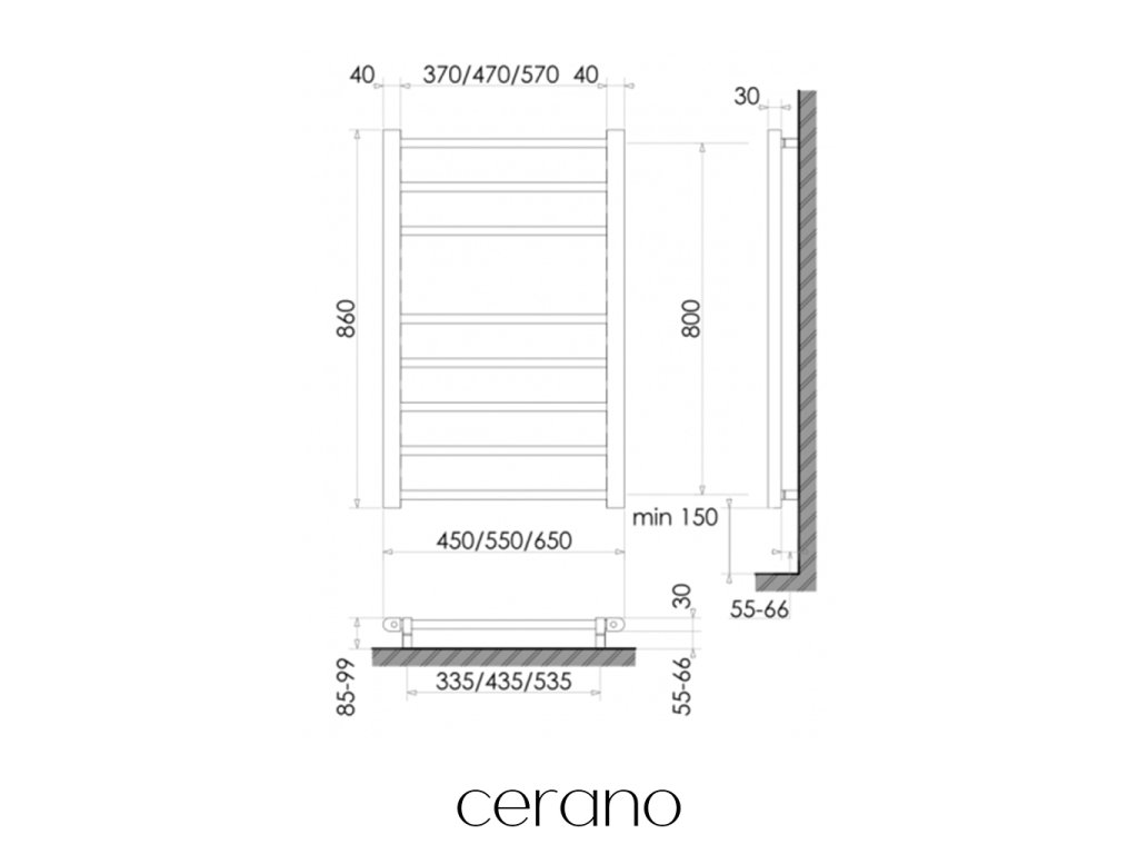 CERANO - Elektrický sušiak uterákov Luca - 128 W - biela lesklá - 860x550 mm