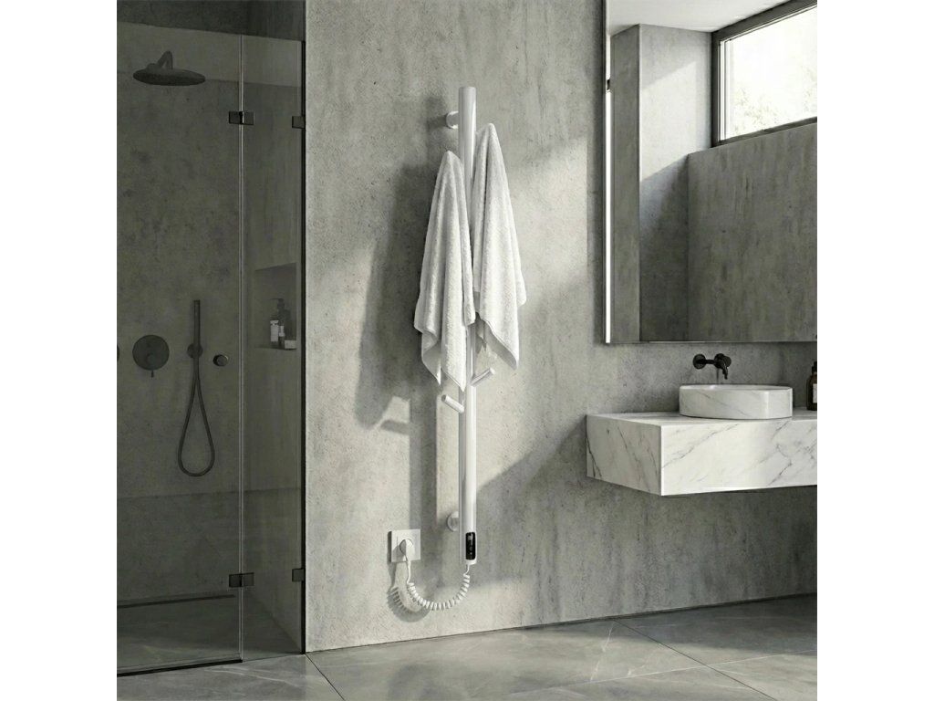 CERANO - Elektrický sušiak uterákov Ramus, s displejom - 160W - biela lesklá - 1400x30 mm