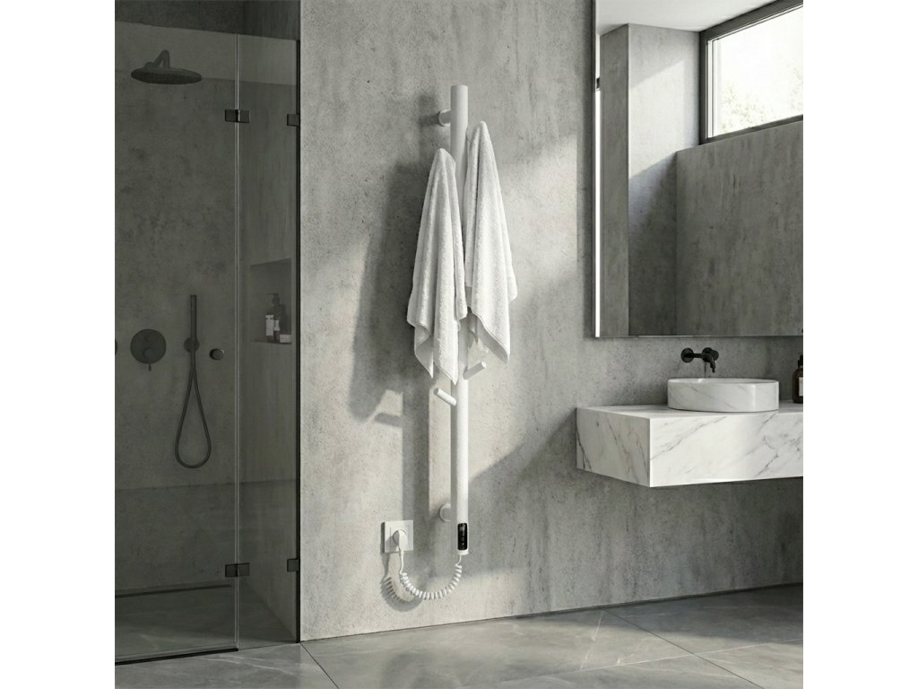 CERANO - Elektrický sušiak uterákov Ramus, s displejom - 160W - biela štruktúrovaná perleť - 1400x30 mm