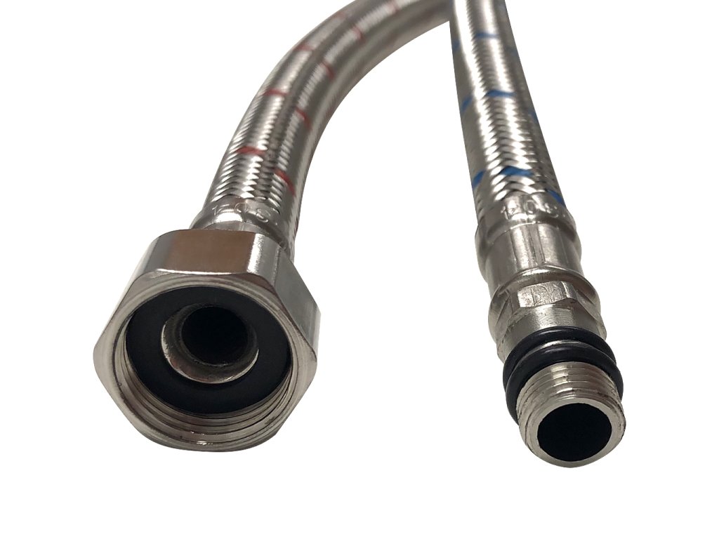 Materiál hadíc je zvolený s ohľadom na odolnosť proti korozívnym vplyvom vodovodnej vody a dlhú životnosť. Výplet flexibilných pripojovacích hadíc je vyrobený z nerezovej ocele. Tento materiál poskytuje hadicám potrebnú pevnosť a odolnosť voči tlaku a ťahu, čo je zásadné pre ich funkciu pri preprave vody pod tlakom. Nerezová oceľ je vhodná vďaka svojej odolnosti voči korózii a chemikáliám, čo zaisťuje dlhú životnosť hadíc a minimalizuje riziko prasknutia alebo úniku vody.