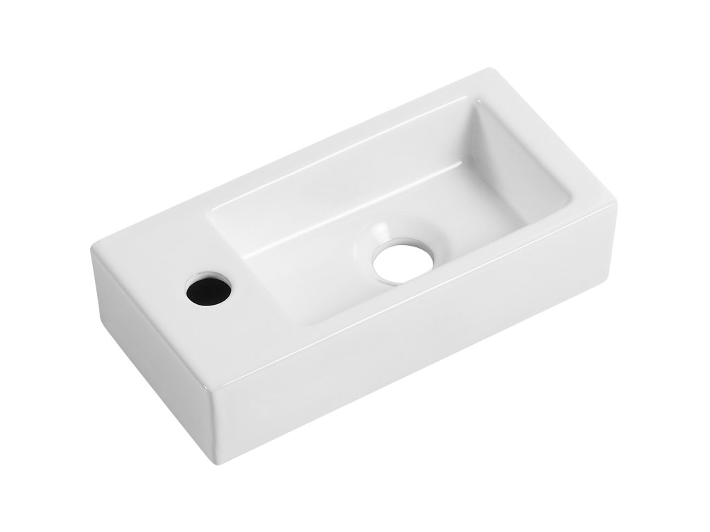 CERANO - Keramické umývadlo Roberto, závesné ľavé - biela lesklá - 37,7x18,5 cm