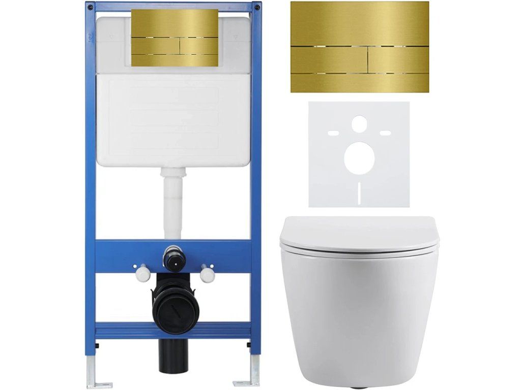 CERANO - Kompletný podomietkový WC set Lite/Cesso - biela lesklá - WC tlačidlo Line. zlatá - predstenová inštalácia - 49x36 cm