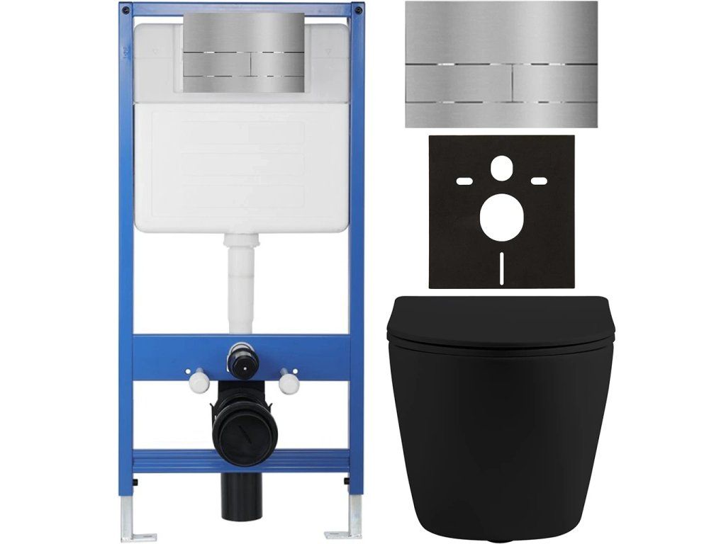 CERANO - Kompletný podomietkový WC set Lite/Cesso - čierna matná - WC tlačidlo Line, nerez - predstenová inštalácia - 49x36 cm