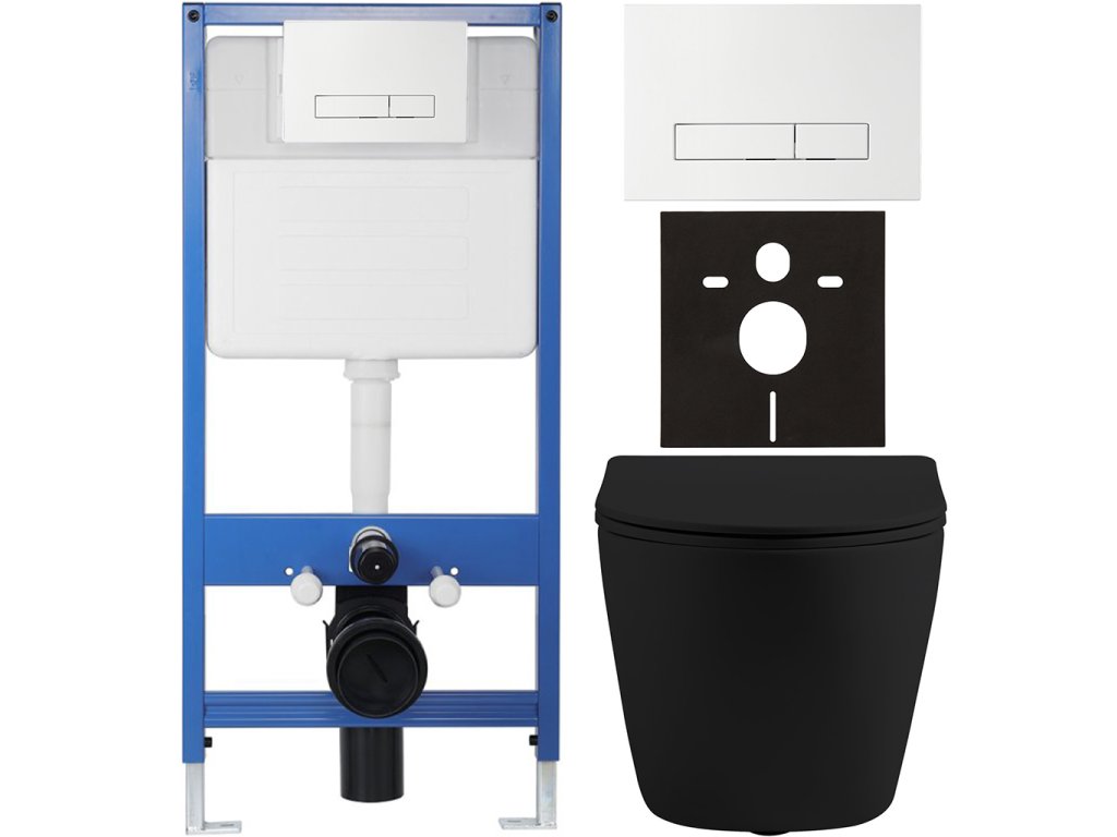 CERANO - Kompletný podomietkový WC set Lite/Cesso - čierna matná - WC tlačidlo Slim, biele - predstenová inštalácia / sadrokartón - 49x36 cm