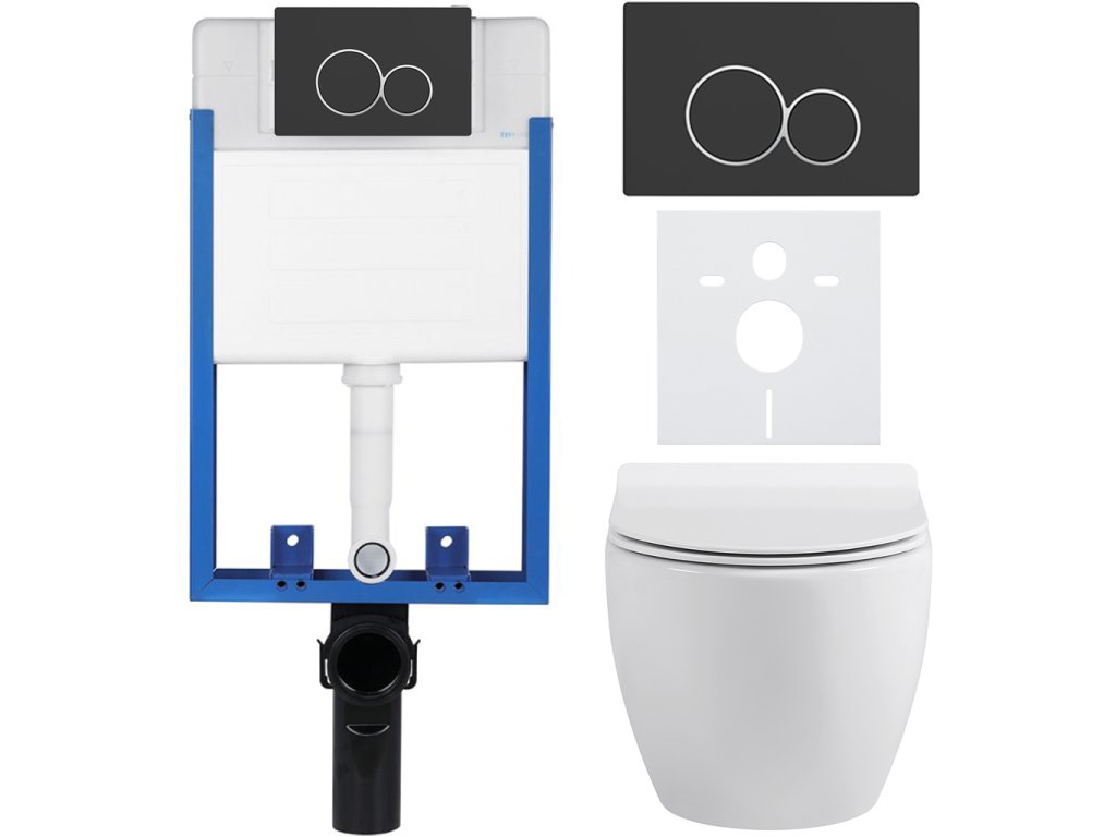 CERANO - Kompletný podomietkový WC set Lite/Dure - biela lesklá - WC tlačidlo Duo, čierna matná - na zamurovanie - 52,5x35 cm