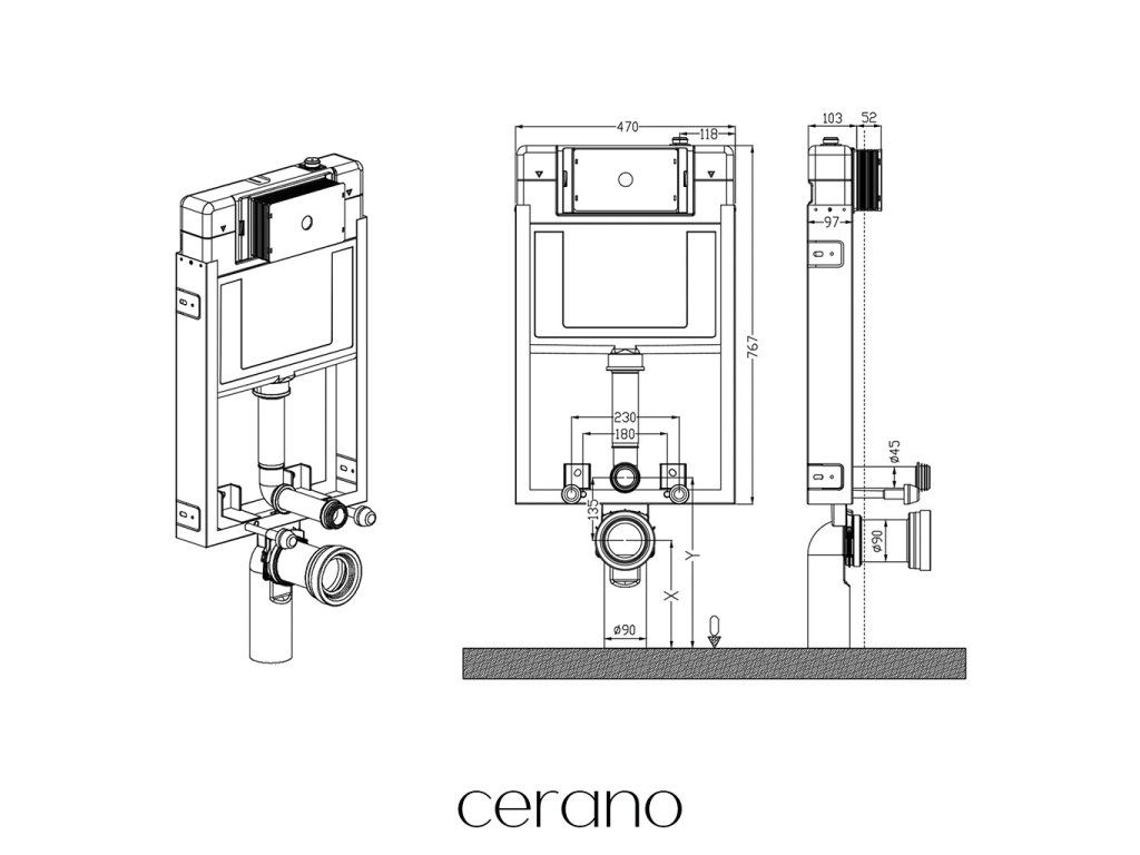 Závesné WC misy Cerano sa ľahko montujú a vďaka štandardnej rozteči uchytenia, sú kompatibilné s modulmi Cerano, ako aj od značiek ako Geberit, Grohe, Alcadrain, Jika, Tece ai.