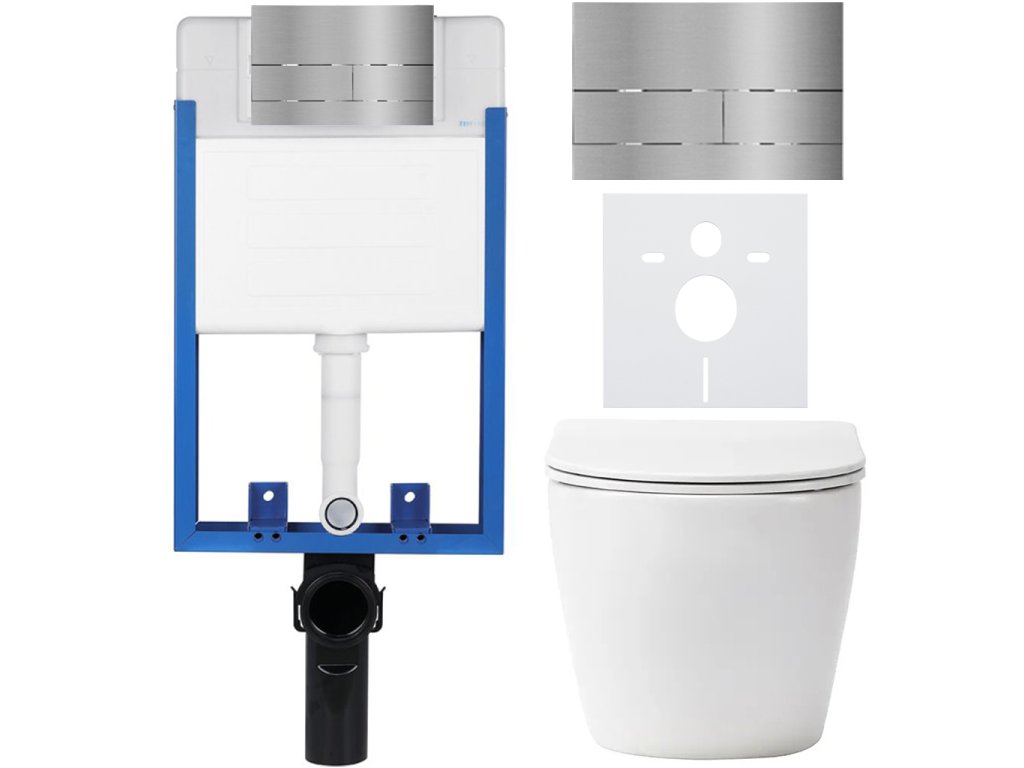 CERANO - Kompletný podomietkový WC set Lite/Verde - biela matná - WC tlačidlo Line, nerez - na zamurovanie - 49x36 cm
