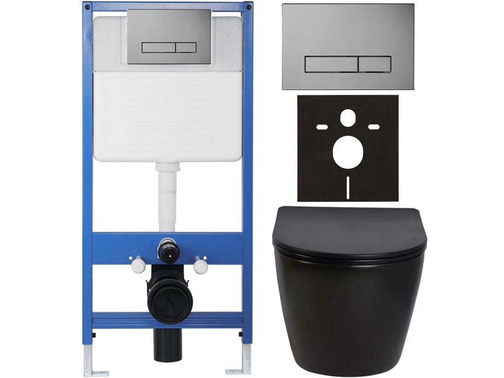 CERANO - Kompletný podomietkový WC set Lite/Verde - čierna lesklá - WC tlačidlo Slim, tmavo šedá - predstenová inštalácia / sadrokartón - 49x36 cm
