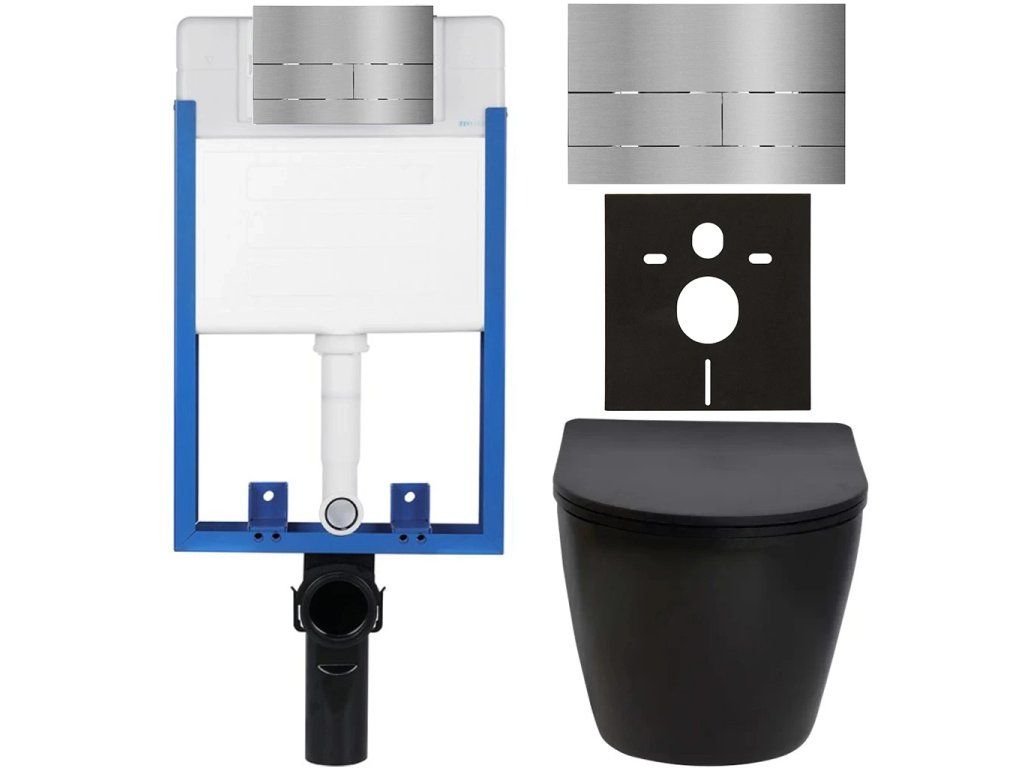 CERANO - Kompletný podomietkový WC set Lite/Verde - čierna matná - WC tlačidlo Line, nerez - na zamurovanie - 49x36 cm