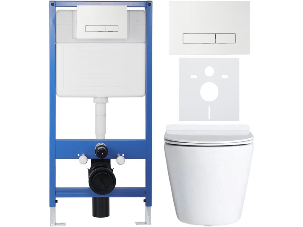 CERANO - Kompletný podomietkový WC set Norbi - biela lesklá - WC tlačidlo Slim, biele - predstenová inštalácia - 48,5x36,5 cm