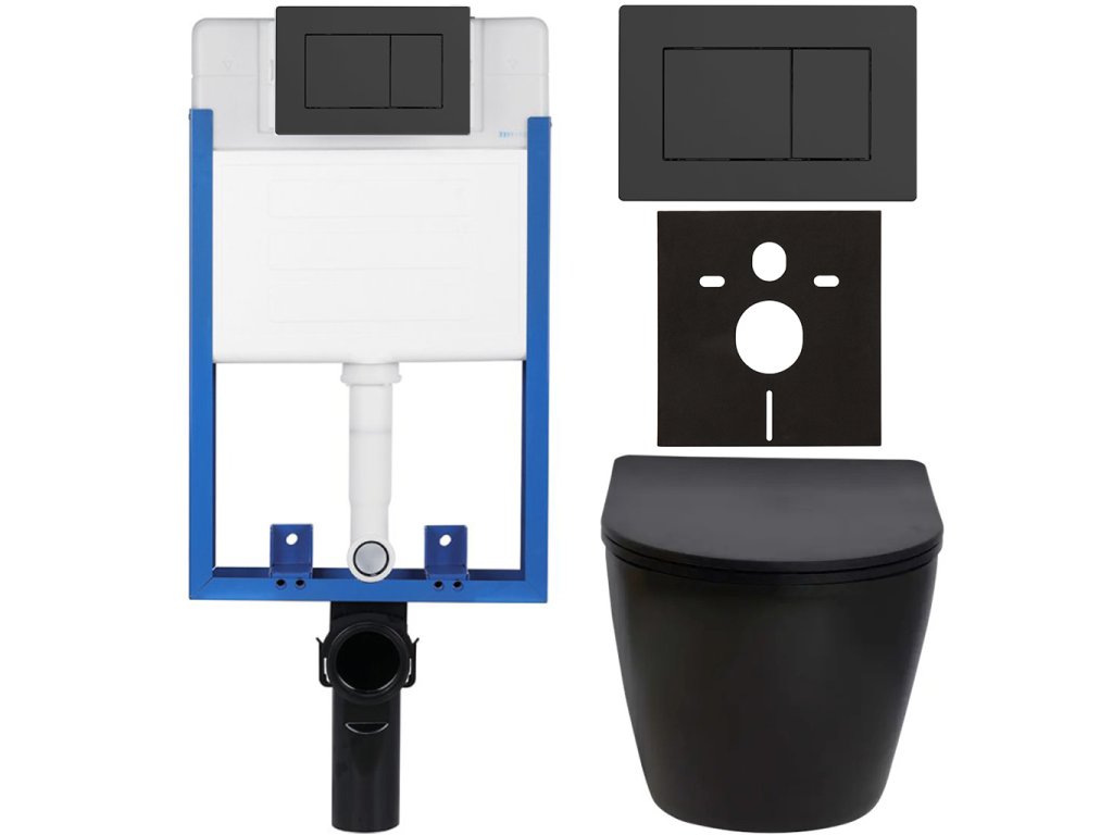 CERANO - Kompletný podomietkový WC set Verde - čierna matná - WC tlačidlo Classic, čierne matné - na zamurovanie - 49x36 cm