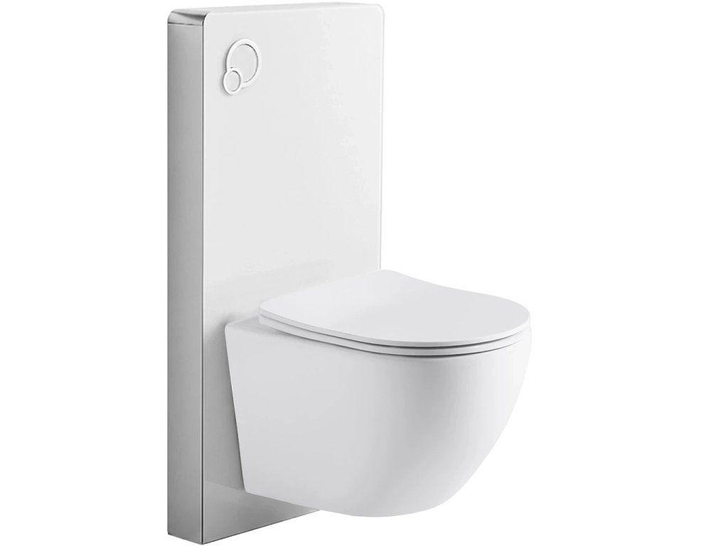 CERANO - Kompletný WC set sanitárny splach. modul - biela matná + WC závesné Verde, Rimless + Slim/UF sedátko - biela matná - 49x36 cm