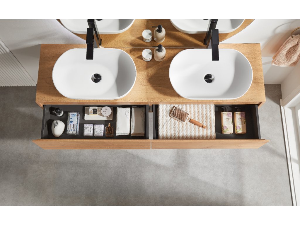 Vďaka úložnému priestoru je tento kúpeľňový nábytok veľmi praktickým pomocníkom do každej kúpeľne. Kombinácia inovatívneho a spoľahlivého riešenia, na ktorom si naša značka zakladá, dala vzniknúť kvalitnému a zároveň veľmi modernému kúpeľňovému nábytku.