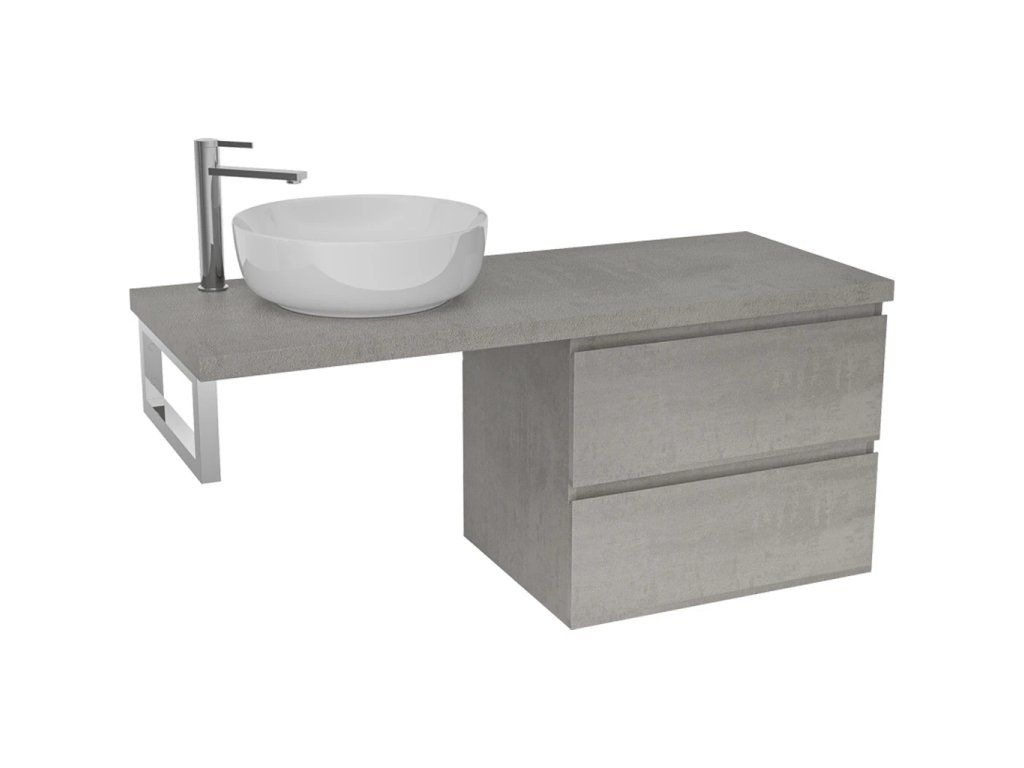 CERANO - Kúpeľňová skrinka Carole - betónovo šedá + doska pod umývadlo Navira Pro - 36 mm + konzola chróm - 140x46x56, 6 cm