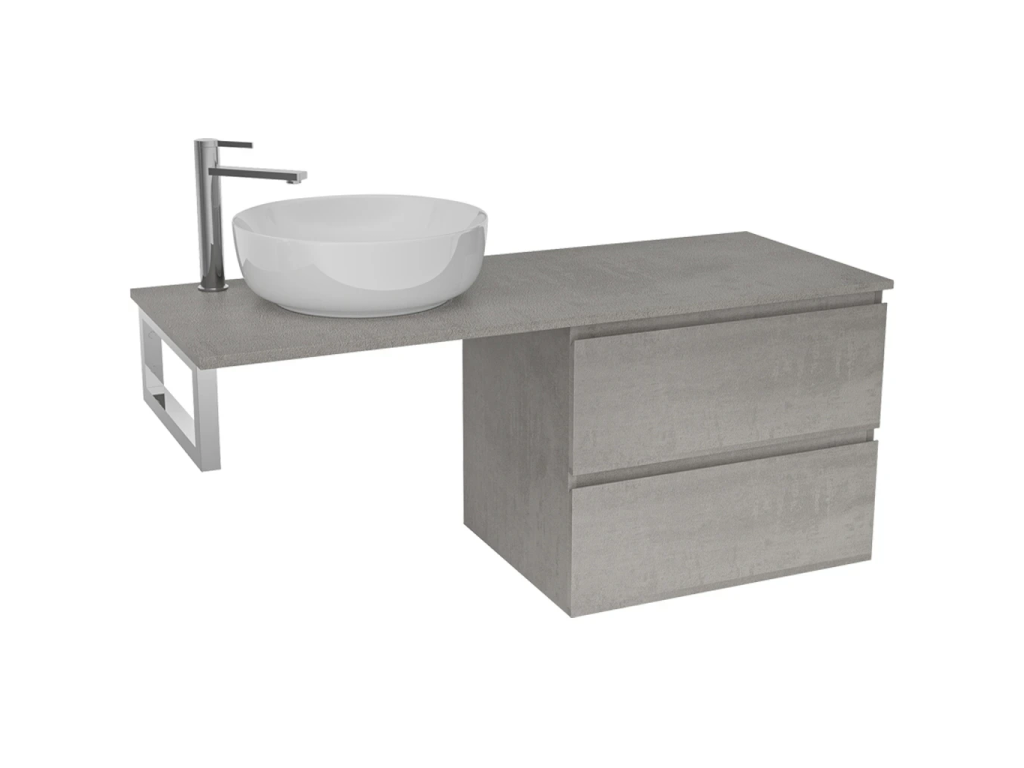 CERANO - Kúpeľňová skrinka Carole - betónovo šedá + doska pod umývadlo Navira Slim - 18 mm + konzola chróm - 140x46x54,8 cm