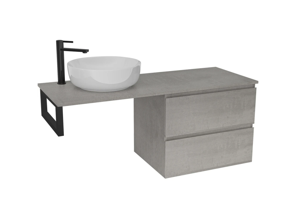 CERANO - Kúpeľňová skrinka Carole - betónovo šedá + doska pod umývadlo Navira Slim - 18 mm + konzola čierna - 120x46x54, 8 cm