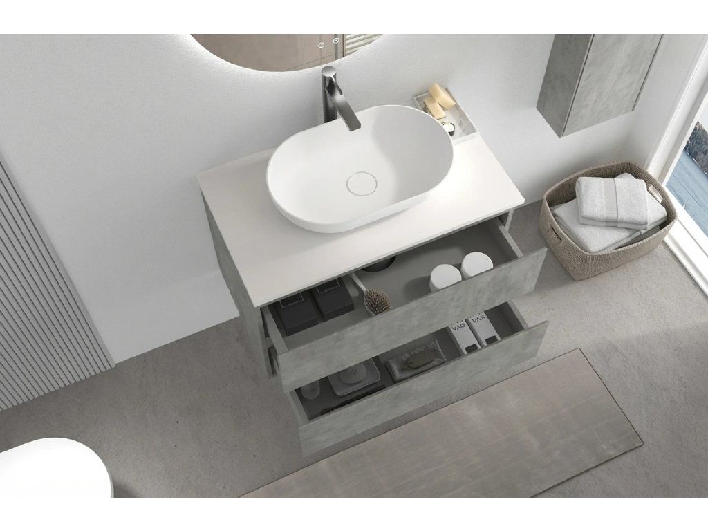 CERANO - Kúpeľňová skrinka Carole - betónovo šedá + doska pod umývadlo z lit. mramoru Elanys - 12 mm - biela matná - 80x49,2x46 cm