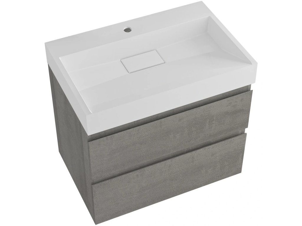 CERANO - Kúpeľňová skrinka Carole - betónovo šedá + umývadlo z lit. mramoru Vita - biela matná - s otvorom - 70x58x46 cm