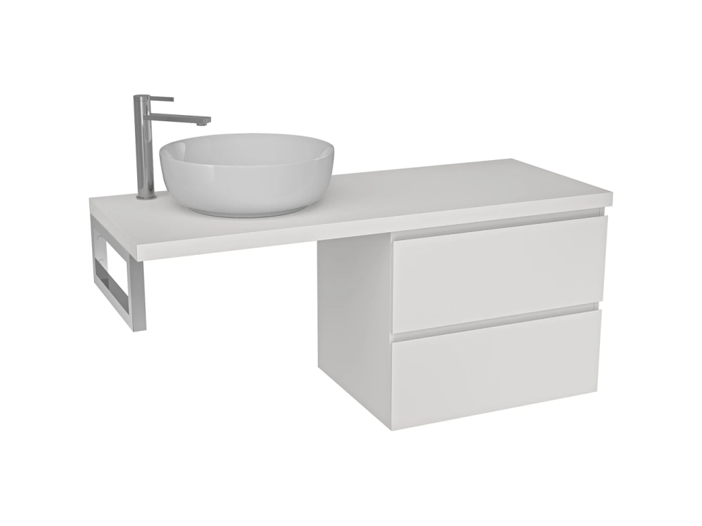 CERANO - Kúpeľňová skrinka Carole - biela matná + doska pod umývadlo Navira Pro - 36 mm + konzola chróm - 160x46x56, 6 cm