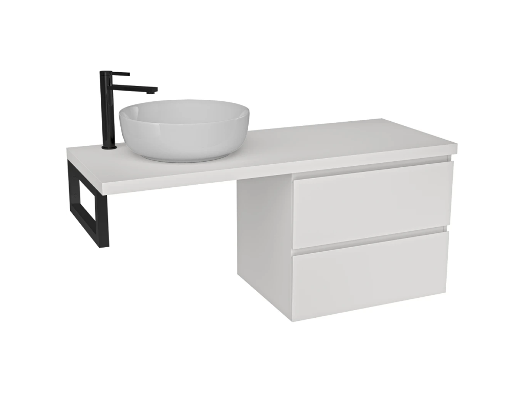 CERANO - Kúpeľňová skrinka Carole - biela matná + doska pod umývadlo Navira Pro - 36 mm + konzola čierna - 140x46x56, 6 cm