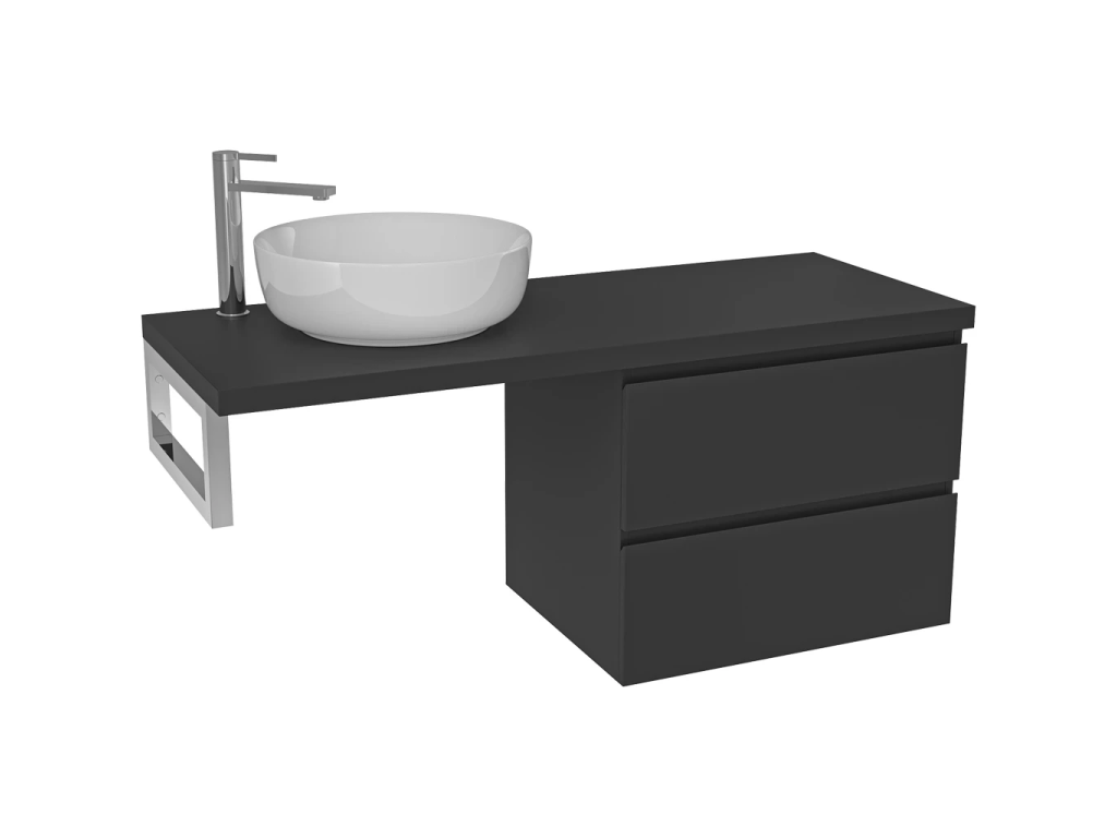 CERANO - Kúpeľňová skrinka Carole - čierna matná + doska pod umývadlo Navira Pro - 36 mm + konzola chróm - 140x46x56, 6 cm
