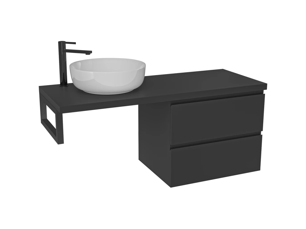 CERANO - Kúpeľňová skrinka Carole - čierna matná + doska pod umývadlo Navira Pro - 36 mm + konzola čierna - 160x46x56, 6 cm