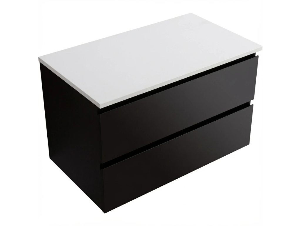 CERANO - Kúpeľňová skrinka Carole - čierna matná + doska pod umývadlo z lit. mramoru Elanys - 12 mm - biela matná - 80x49,2x46 cm