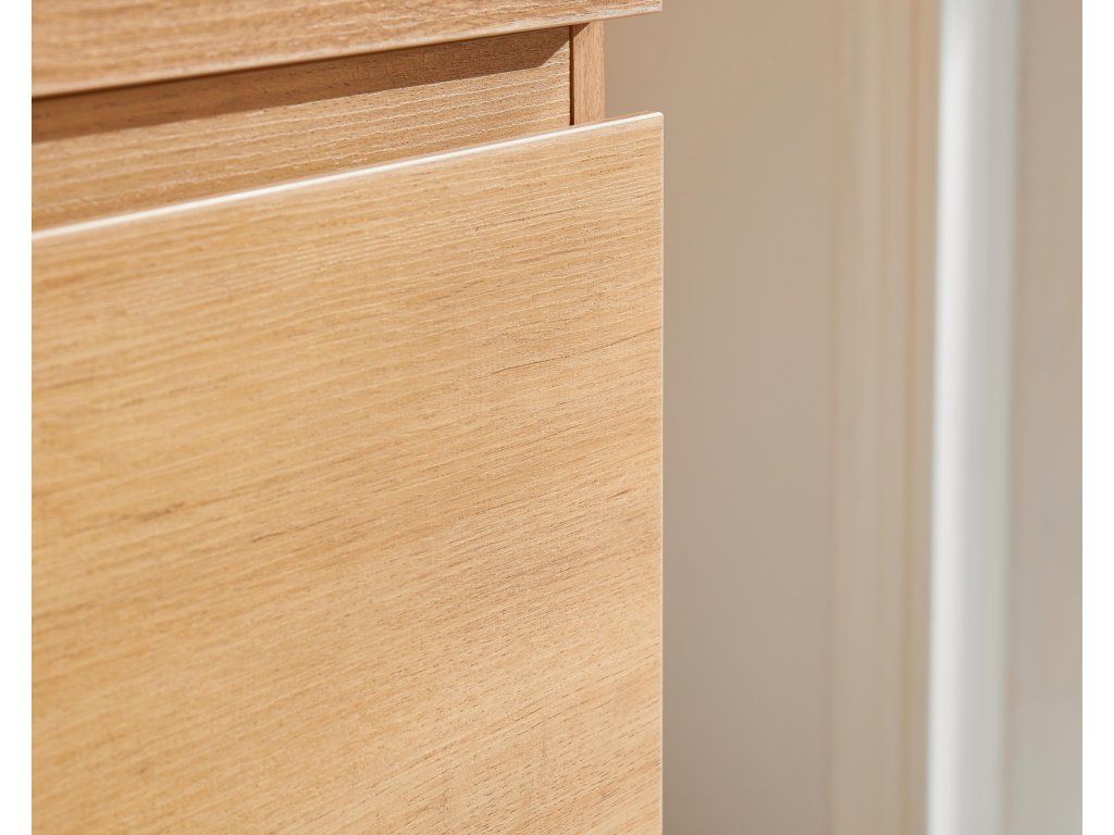 Vďaka integrovanému soft-close mechanizmu sa dvierka a zásuvky zatvárajú plynulo a ticho – hydraulický doraz tlmí náraz, zabraňuje búchaniu a znižuje opotrebenie, takže nábytok vydrží dlhšie a používanie je pohodlné.