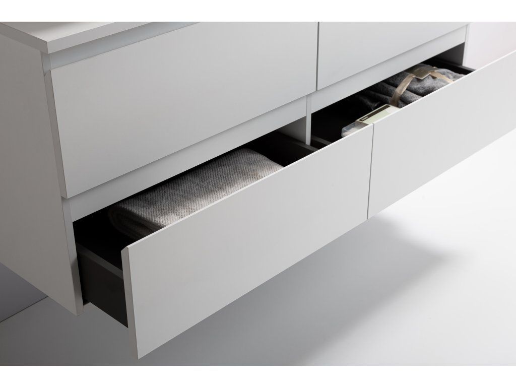 CERANO - Kúpeľňová skrinka Carole + doska pod umývadlo Navira Slim - 18 mm - biela matná - 140x49, 8x46 cm