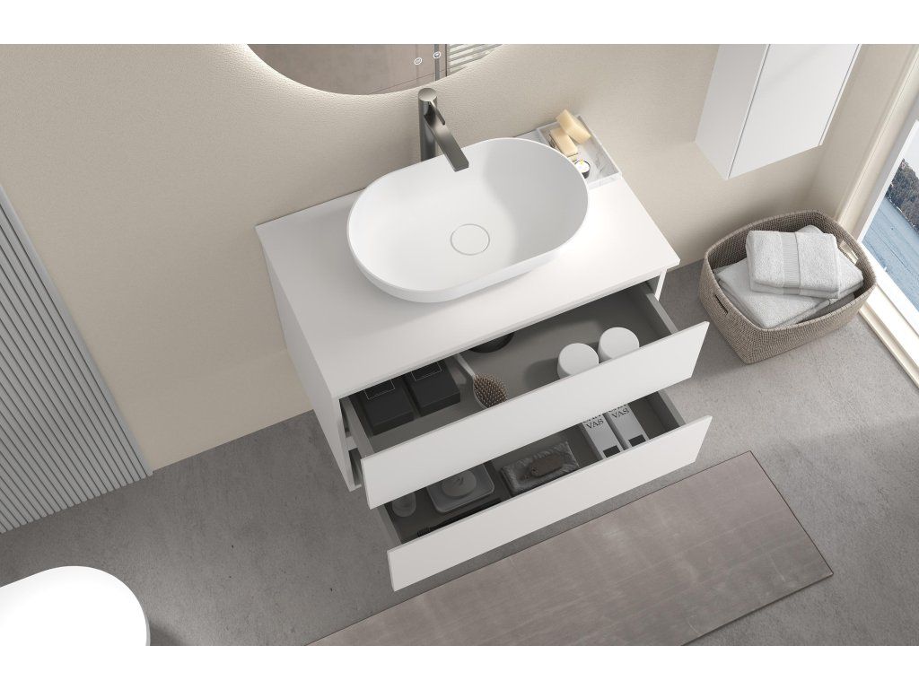 CERANO - Kúpeľňová skrinka Carole + doska pod umývadlo Navira Slim - 18 mm - biela matná - 70x49, 8x46 cm