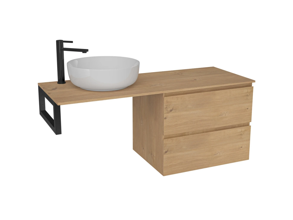 CERANO - Kúpeľňová skrinka Carole - dub medový + doska pod umývadlo Navira Slim - 18 mm + konzola čierna - 120x46x54, 8 cm