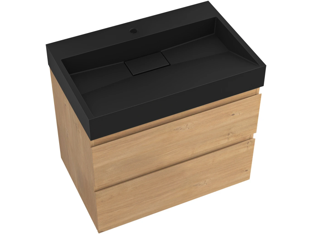 CERANO - Kúpeľňová skrinka Carole - dub medový + umývadlo z lit. mramoru Vita - čierna matná - s otvorom - 70x58x46 cm