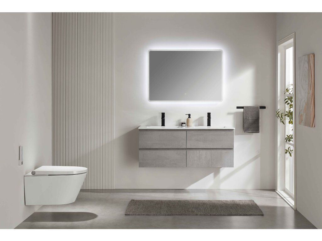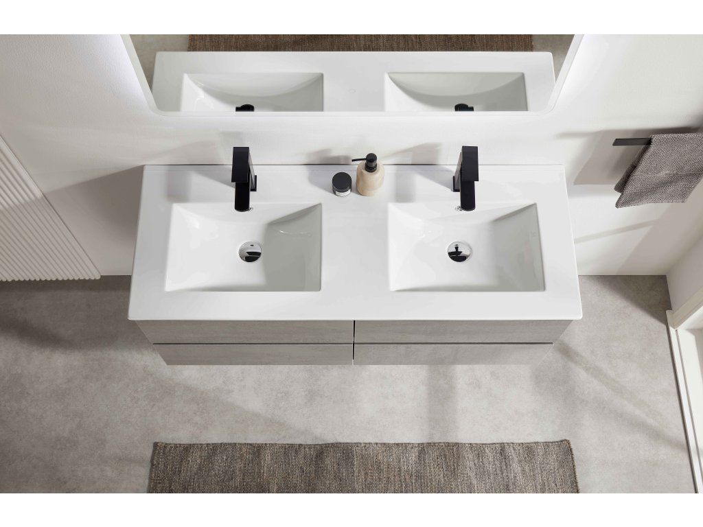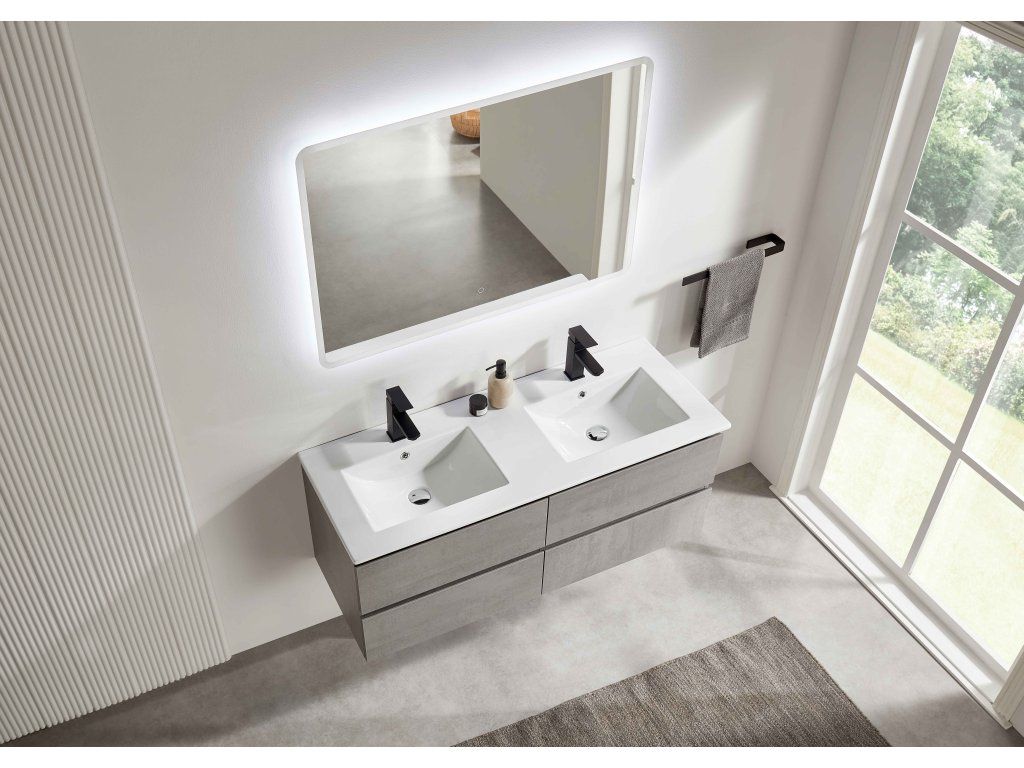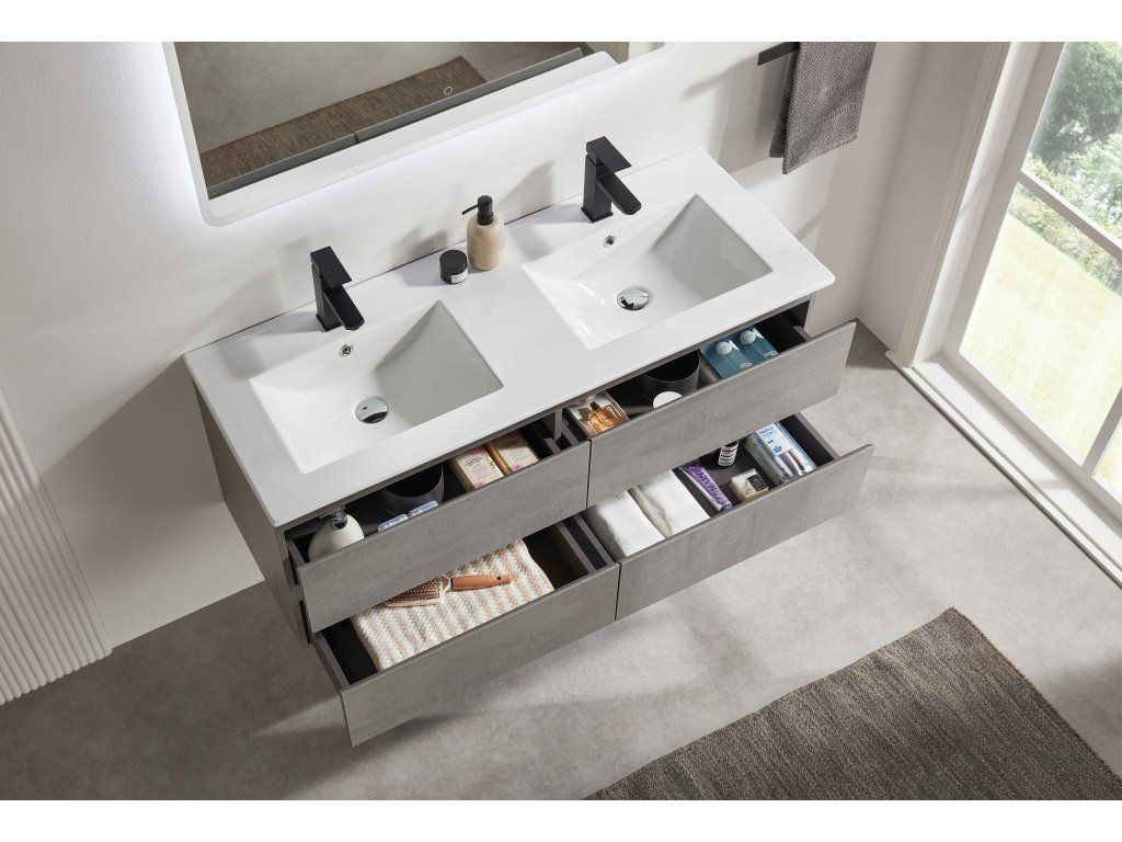 CERANO - Kúpeľňová skrinka Carole + keramické dvojumývadlo Todo - betónovo šedá - 121x50x46,5 cm