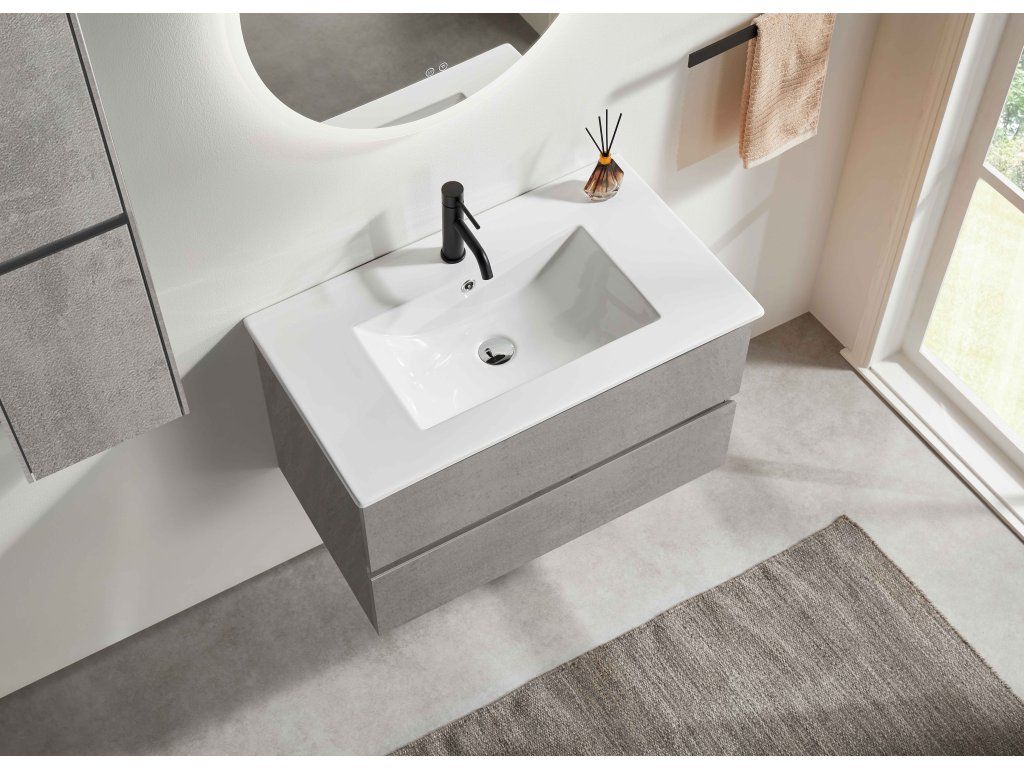 CERANO - Kúpeľňová skrinka Carole + keramické umývadlo Todo - betónovo šedá - 61x50x46,5 cm