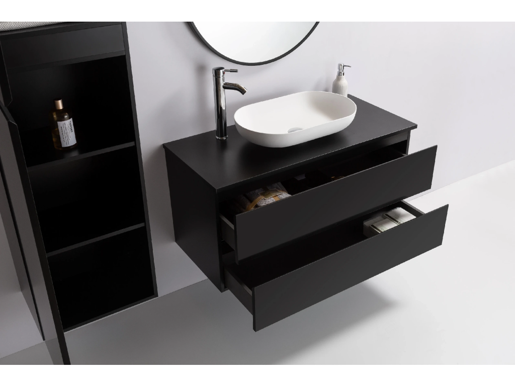 CERANO - Kúpeľňová skrinka Carole s doskou pod umývadlo - 18 mm - čierna matná - 100x49,8x46,5 cm