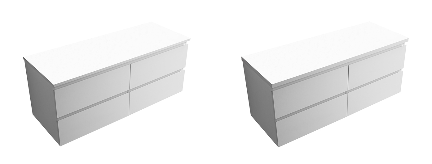 CERANO - Kúpeľňová skrinka Carole s doskou pod umývadlo - 36 mm - biela matná - 121x51,6x46,5 cm