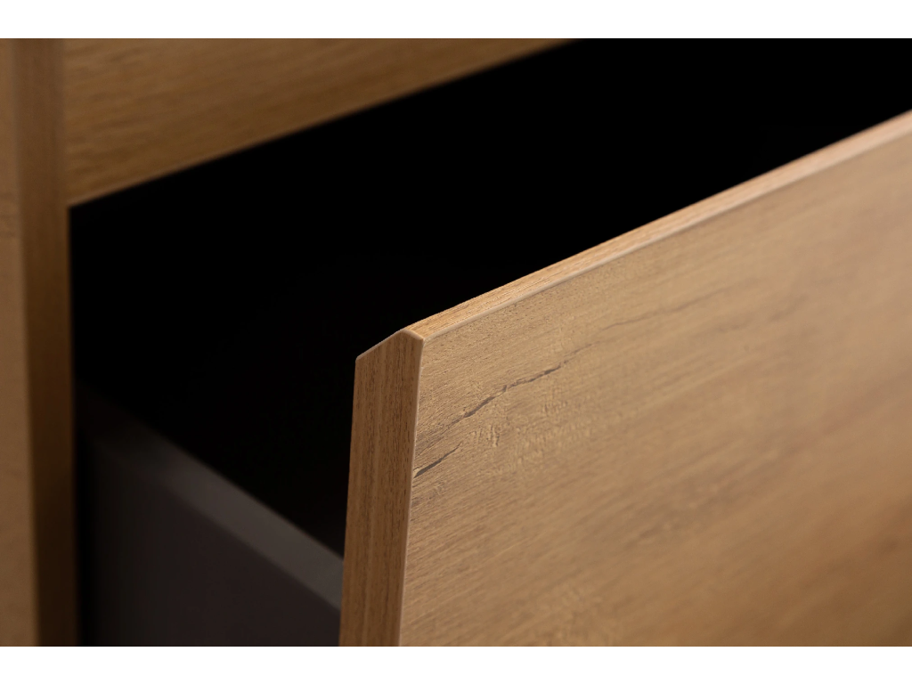 Vďaka integrovanému soft-close mechanizmu sa dvierka a zásuvky zatvárajú plynulo a ticho – hydraulický doraz tlmí náraz, zabraňuje búchaniu a znižuje opotrebenie, takže nábytok vydrží dlhšie a používanie je pohodlné.