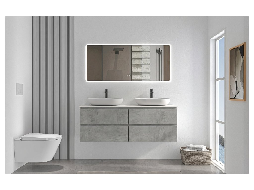 CERANO - Kúpeľňová skrinka Carole s doskou pod umývadlo z liateho mramoru Elanys - 12 mm - betónovo šedá - 160x49,8x46,5 cm