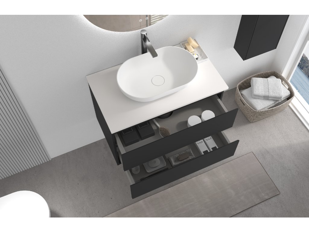 CERANO - Kúpeľňová skrinka Carole s doskou pod umývadlo z liateho mramoru Elanys - 12 mm - čierna matná - 60x49,8x46,5 cm