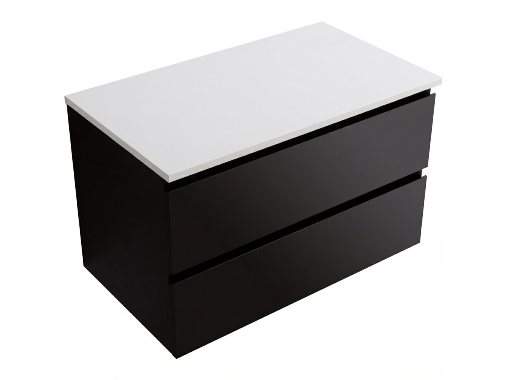 CERANO - Kúpeľňová skrinka Carole s doskou pod umývadlo z liateho mramoru Elanys - 12 mm - čierna matná - 80x49,8x46,5 cm