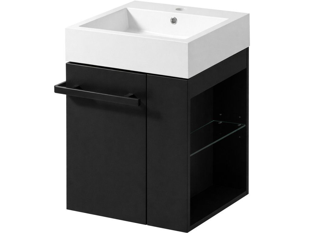CERANO - Kúpeľňová skrinka Esme - čierna matná + umývadlo z lit. mramoru - biela matná - 45x45x62,5 cm