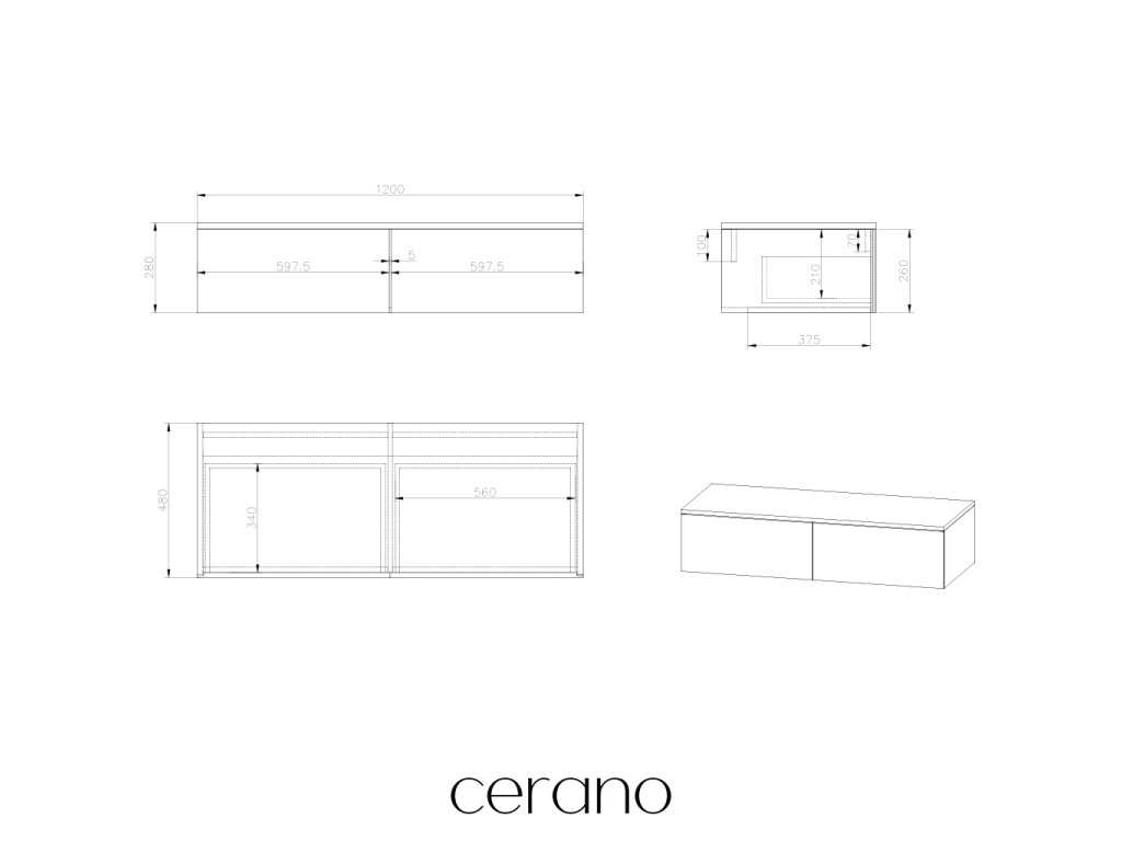 CERANO - Kúpeľňová skrinka pod umývadlo Noira - betónovo šedá - 120x48x28 cm
