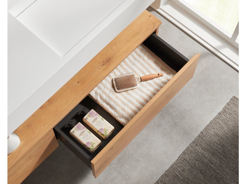 Vďaka úložnému priestoru je tento kúpeľňový nábytok veľmi praktickým pomocníkom do každej kúpeľne. Kombinácia inovatívneho a spoľahlivého riešenia, na ktorom si naša značka zakladá, dala vzniknúť kvalitnému a zároveň veľmi modernému kúpeľňovému nábytku.