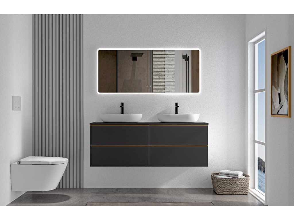 CERANO - Kúpeľňová skrinka pod umývadlo s úchytkou/doskou pod umývadlo Velora - 18 mm - čierna matná, zlatá úchytka - 158x53x45, 2 cm